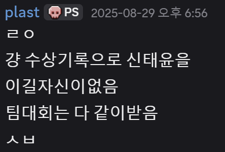 ㅂㅅ 제 마지막 대회는 정말 올해 ICPC만 남은 것 같은데, 그때까지 잘 준비해서 좋은 결과가 있으면 좋겠네요.