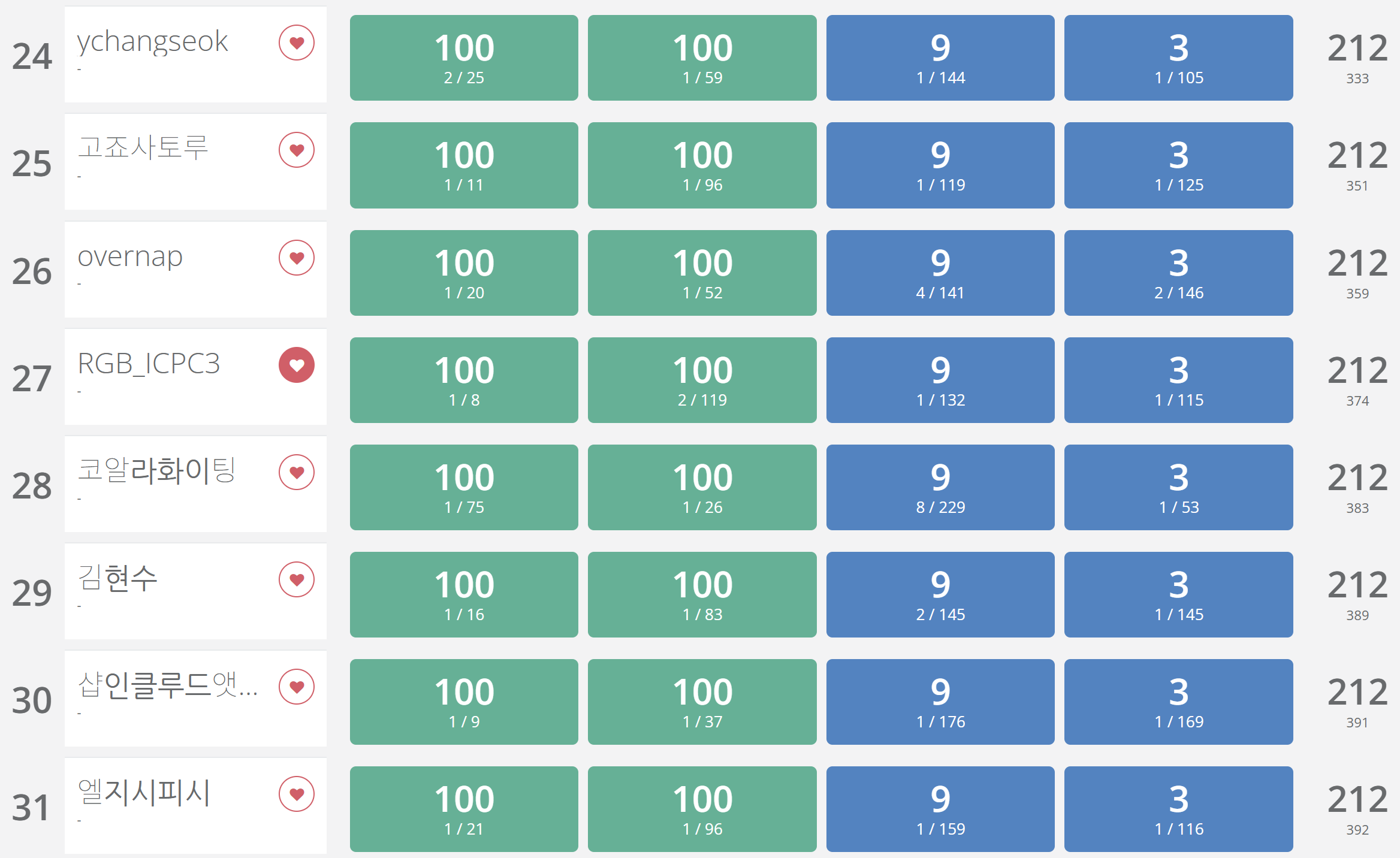 평소에 Serendipity__라는 닉네임을 잘만 쓰다가 이런 중요한 자리에서 뭔 RGB_ICPC3아오